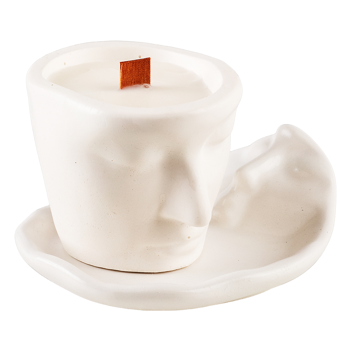 Φυτικό Κερί Σόγιας σε Πορσελάνη σχήμα Πρόσωπο με πιατάκι